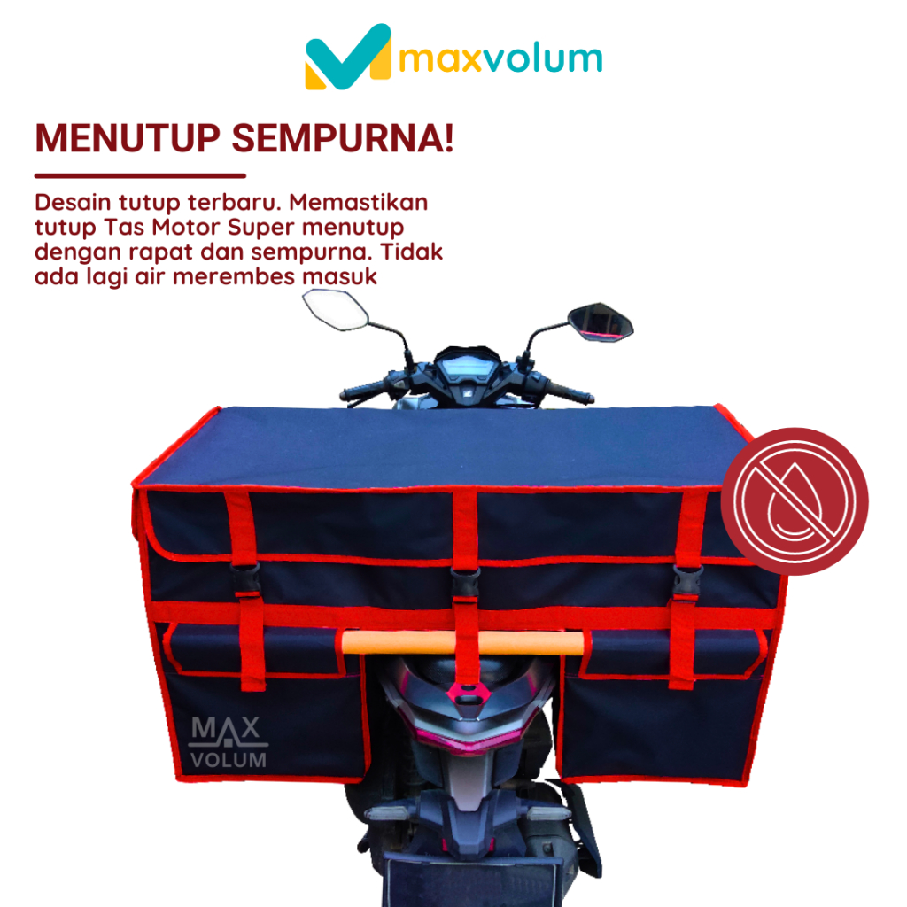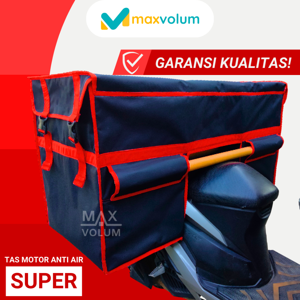 Maxvolum Tas Motor Anti Air Super Hitam List Merah Tas Obrok / Tas Kronjot / Tas Kurir / Tas Rengkek / Tas Bronjong
