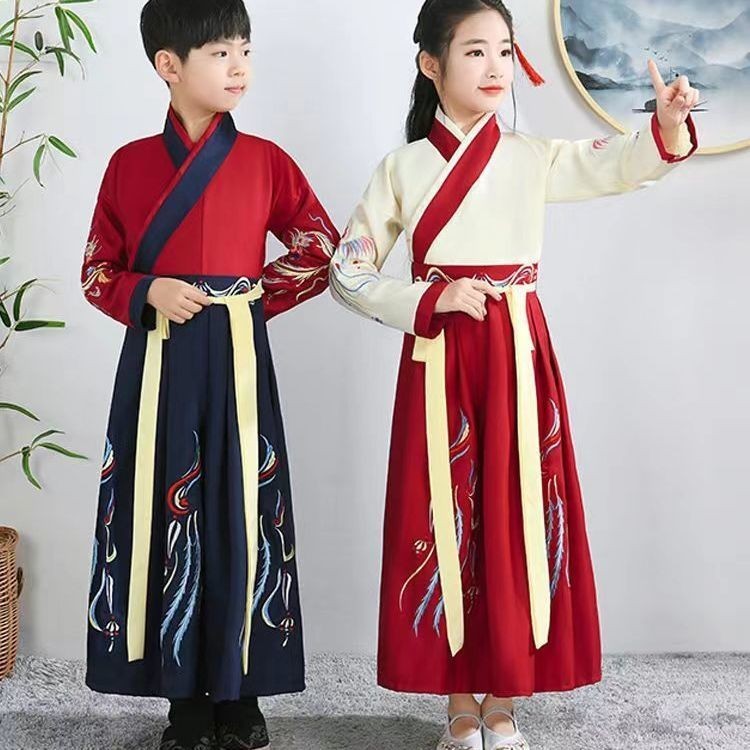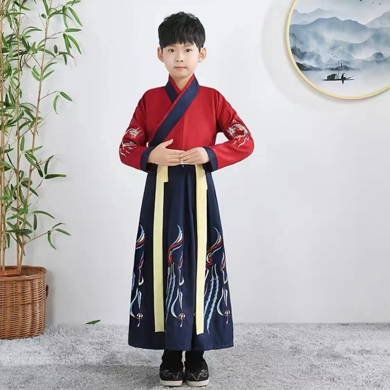 Seragam Sekolah Tradisional Anak Laki-laki Hanfu Anak-anak Kostum Gaya Cina Kostum Pertunjukan