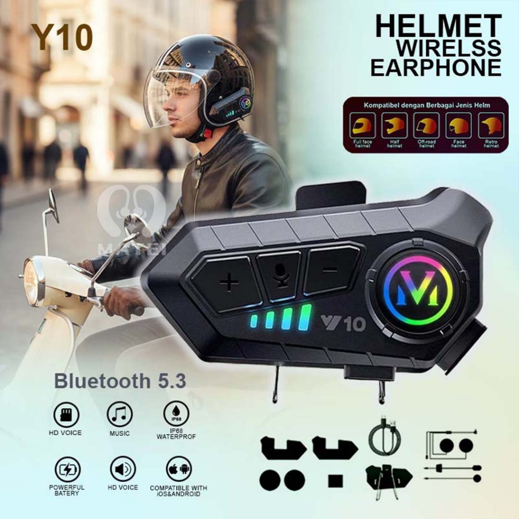 Mochoe Intercom Y10/K06 Headset Helm Bluetooth 5.3 Sepeda Motor Bluetooth Hands Free Call Kit IPX6 Tahan Air