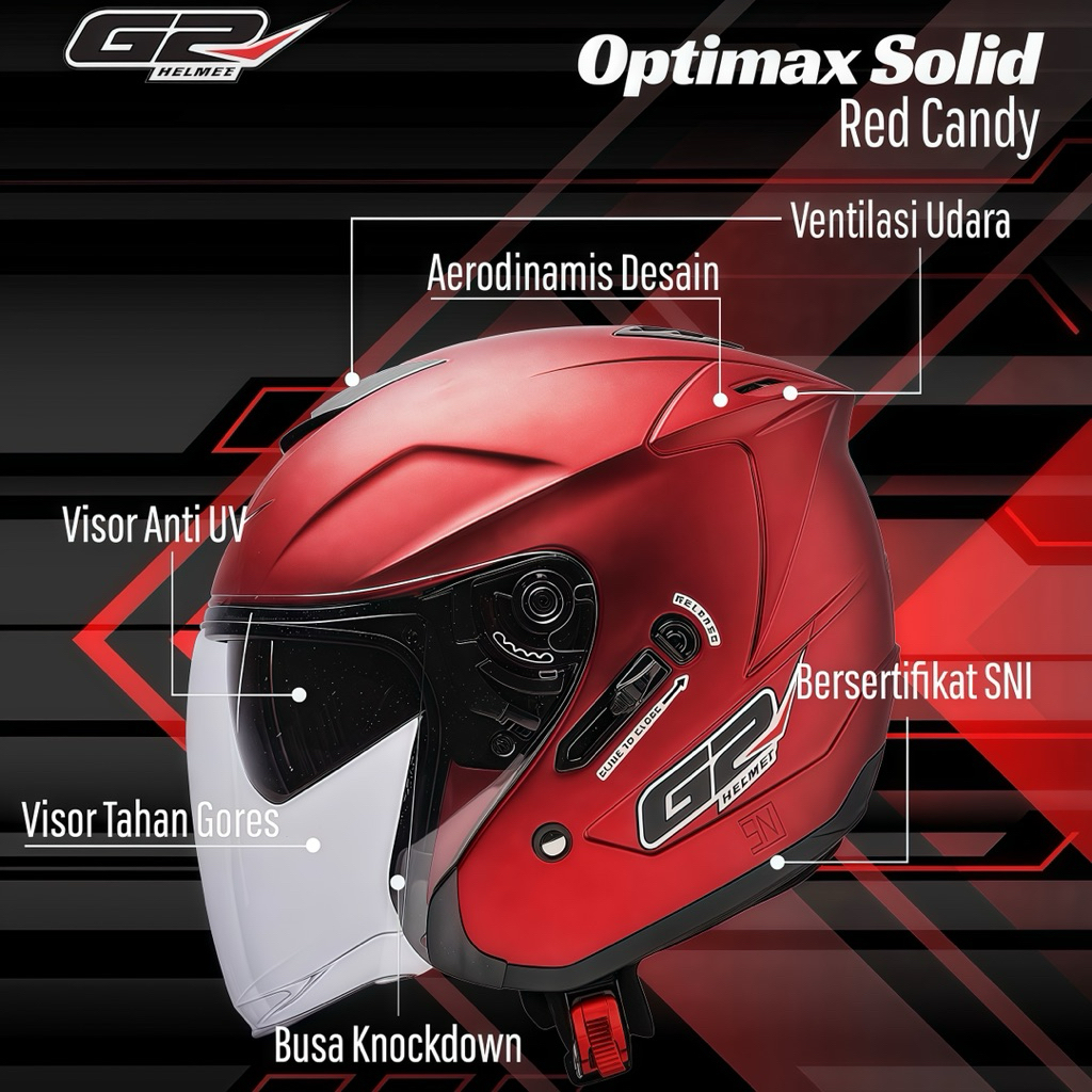 Helm G2 OPTIMAX Solid ORIGINAL Helem Half Face Double Visor SNI