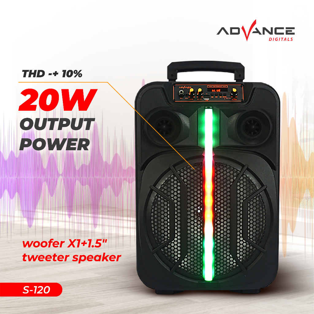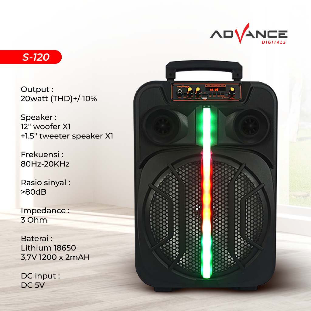 [Free 2 Mic]Advance Speaker S-120 2MIC Bluetooth Music Karaoke 12inch/Garansi 12 bulan