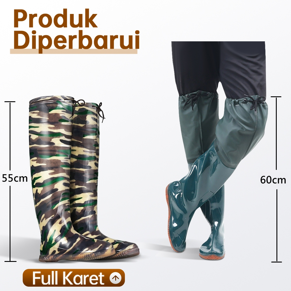 Sepatu Boots Petani Anti Air 55cm Full Karet - Produk Diperbarui, Tahan Lama & Lembut untuk Kitchen, Garden, Fishing, Sawah (Mudah Dibawa, Desain Ergonomis)