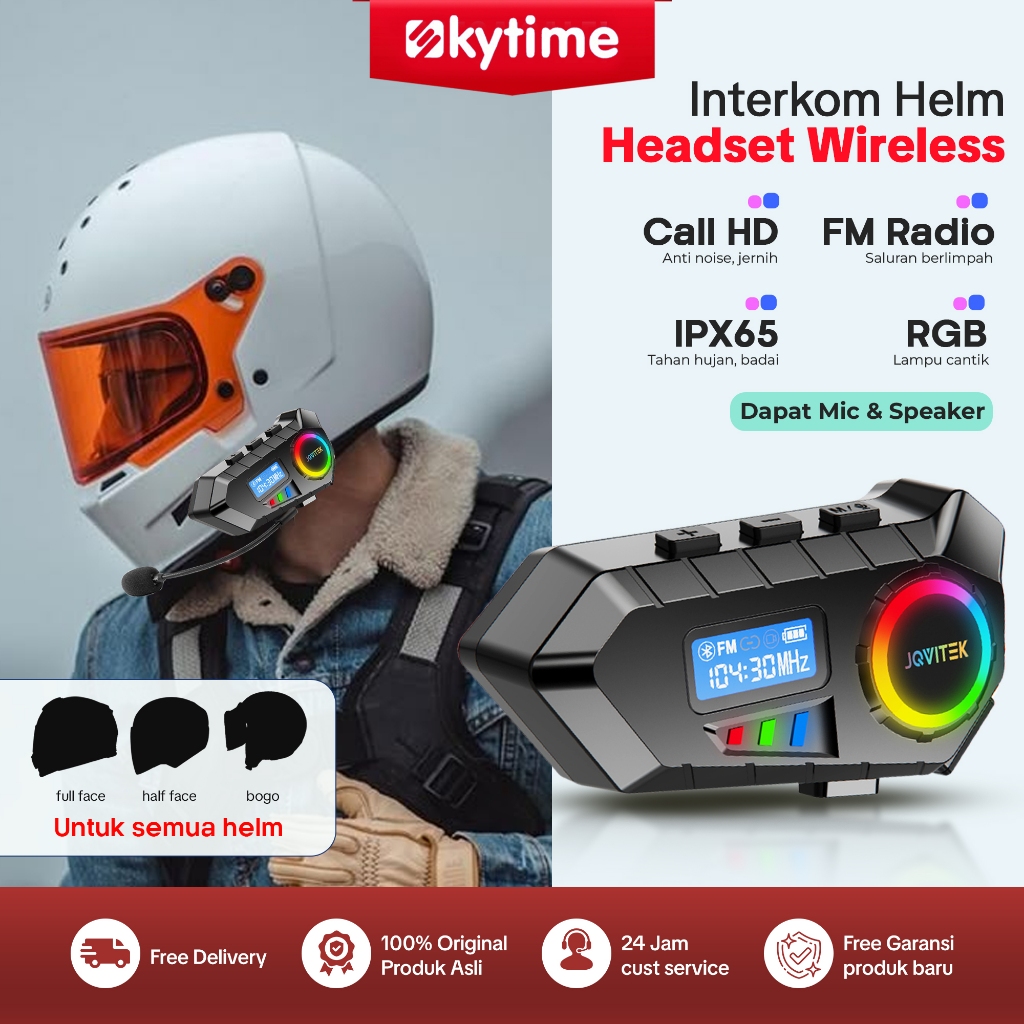 Skytime T08 Intercom Motorcycle Riding Helmet Bluetooth Headset with Microphone and FM Radio Voice Calls IP65 Water and