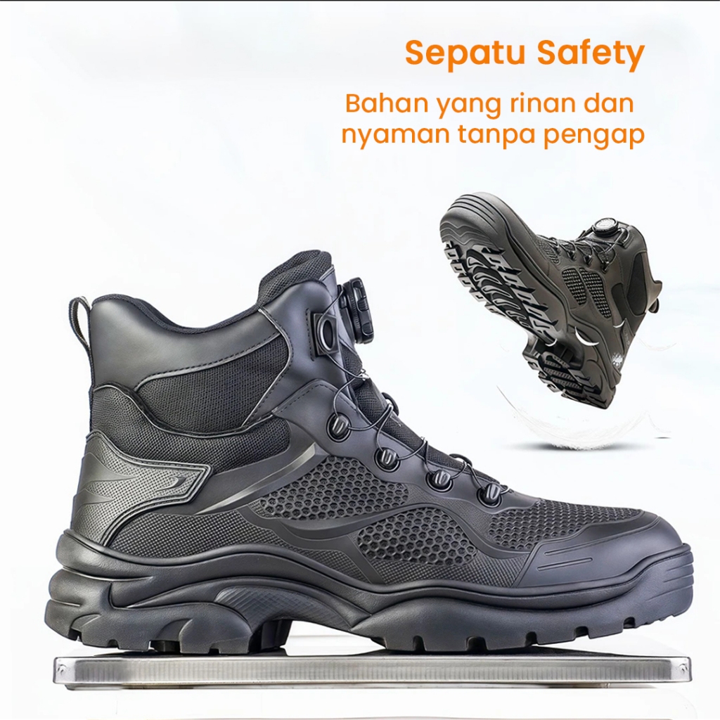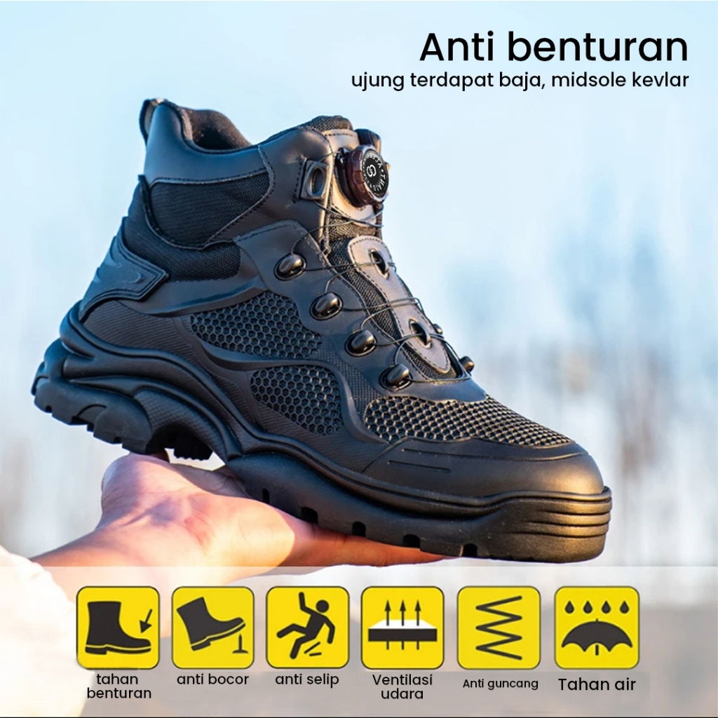 Sepatu Pria Safety Import Ujung Besi Tali Putar ORIGINAL Sneakers Kerja Cowok Cewek Outdor SI20
