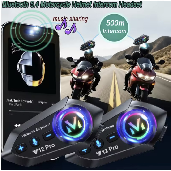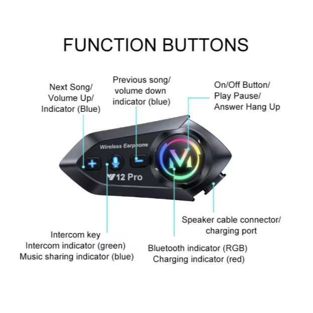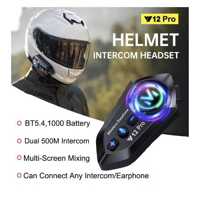 Smartcom Interkom Helm Y12 PRO Headset Earphone Bluetooth Intercom Motor Tahan Air denggar musik