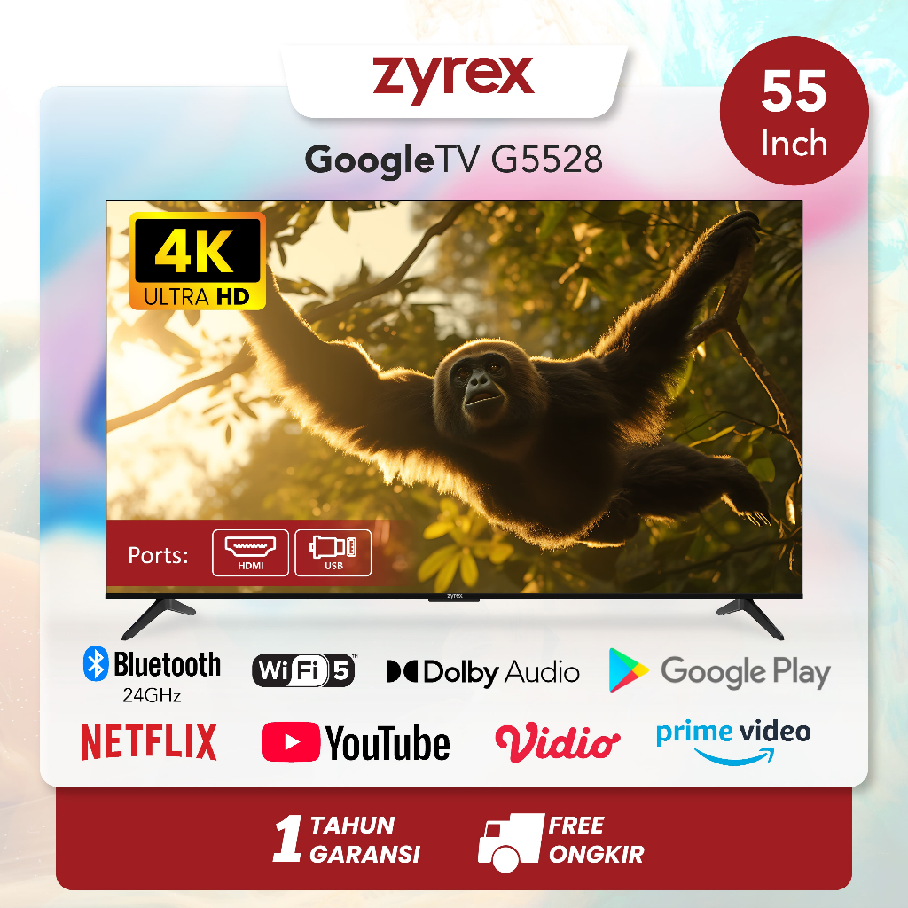 Zyrex Google TV G5528 55 Inch 4K UHD Smart Android 11 (Wajib Tambah Packing Kayu) – Garansi Resmi 1 Tahun