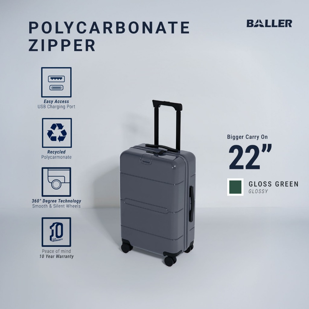 BALLER Koper Zipper Polycarbonate Bigger Carry On 22 inch Gloss Cool Grey - Koper Kabin Travelling TSA Lock