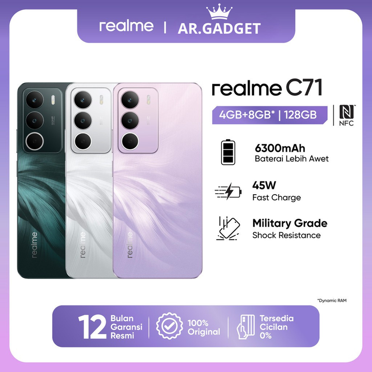 [Mall] realme C71 4GB+8GB* |128GB (6300 Baterai | 45W Fast Charge | Military Grade Shock Resistance | NFC)