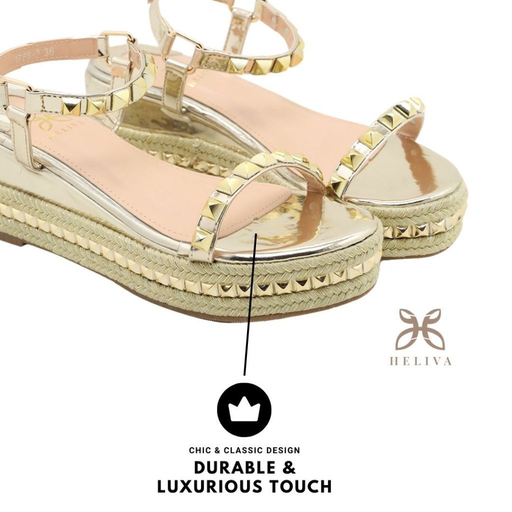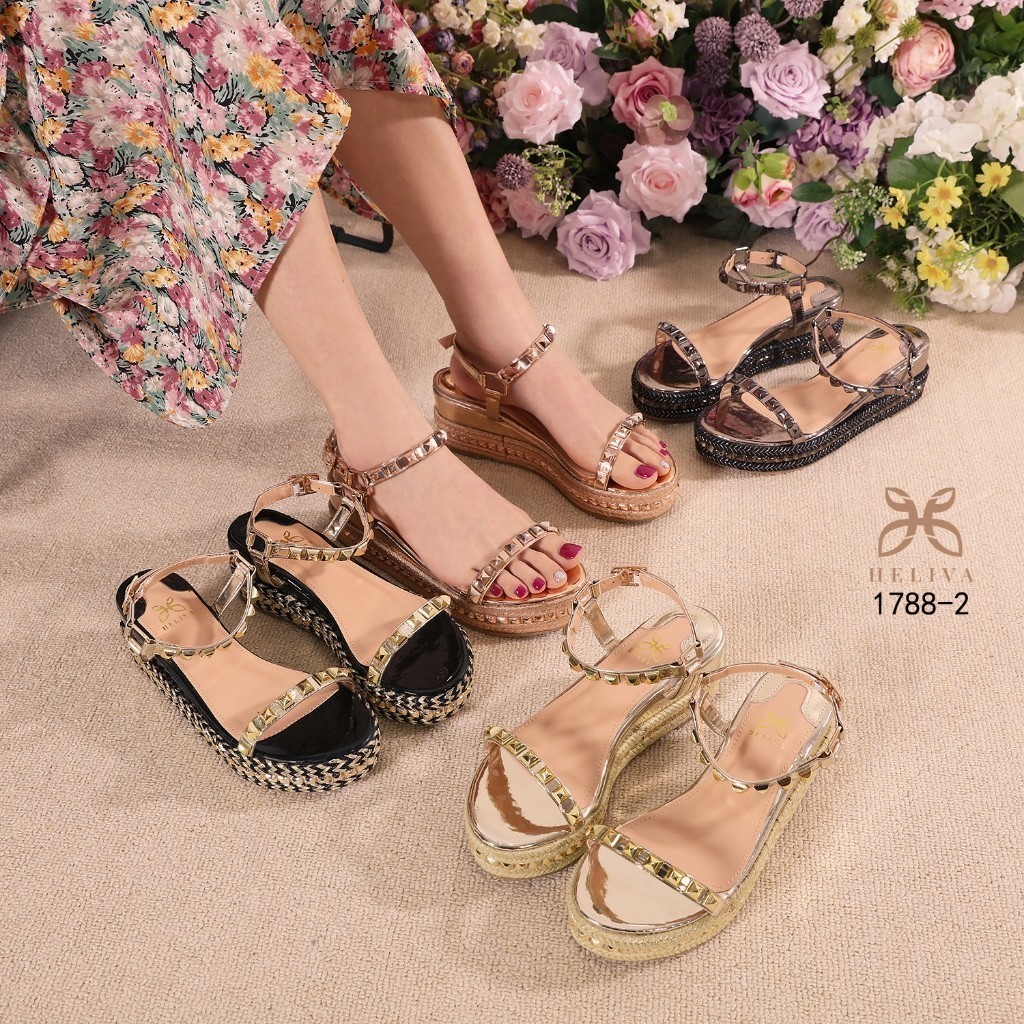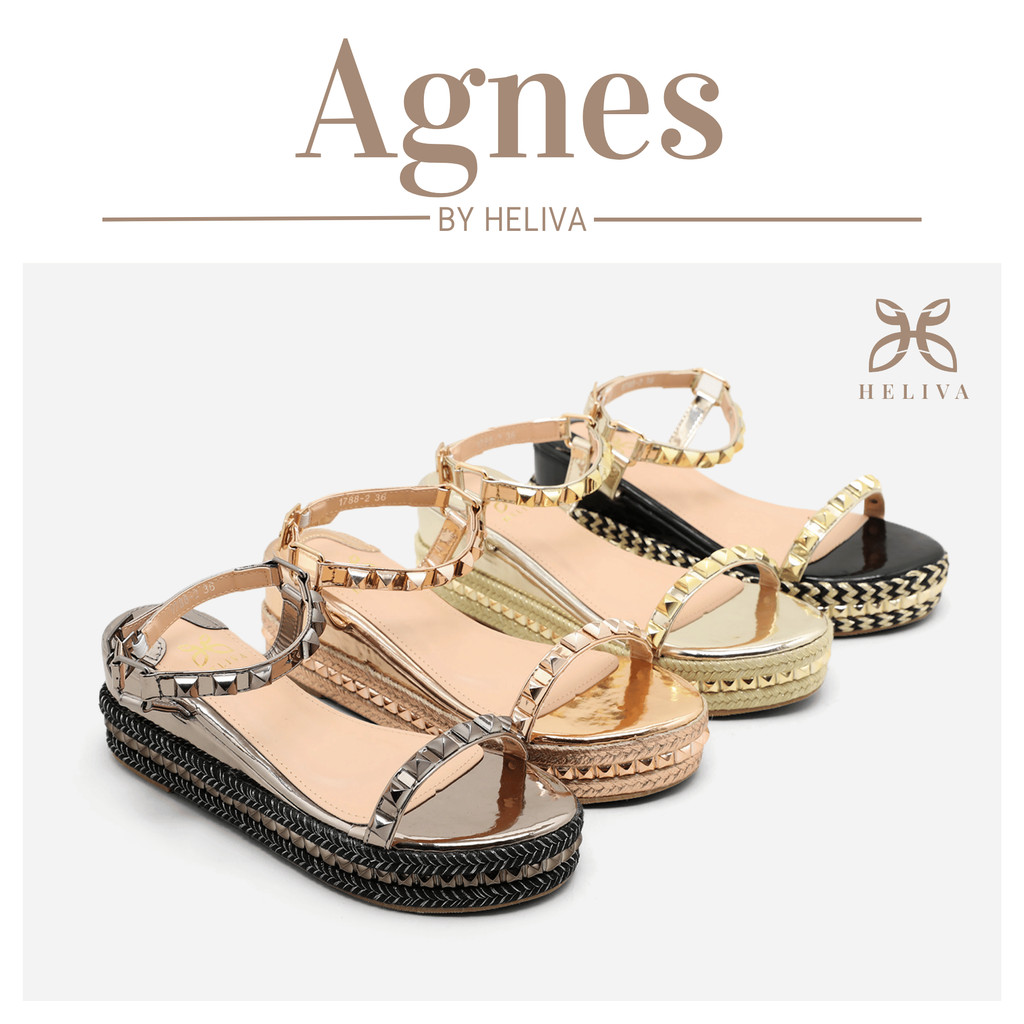 HELIVA AGNES Sandal Wedges Wanita Studs Glossy Tali Ankle Sol 6cm 1788-2