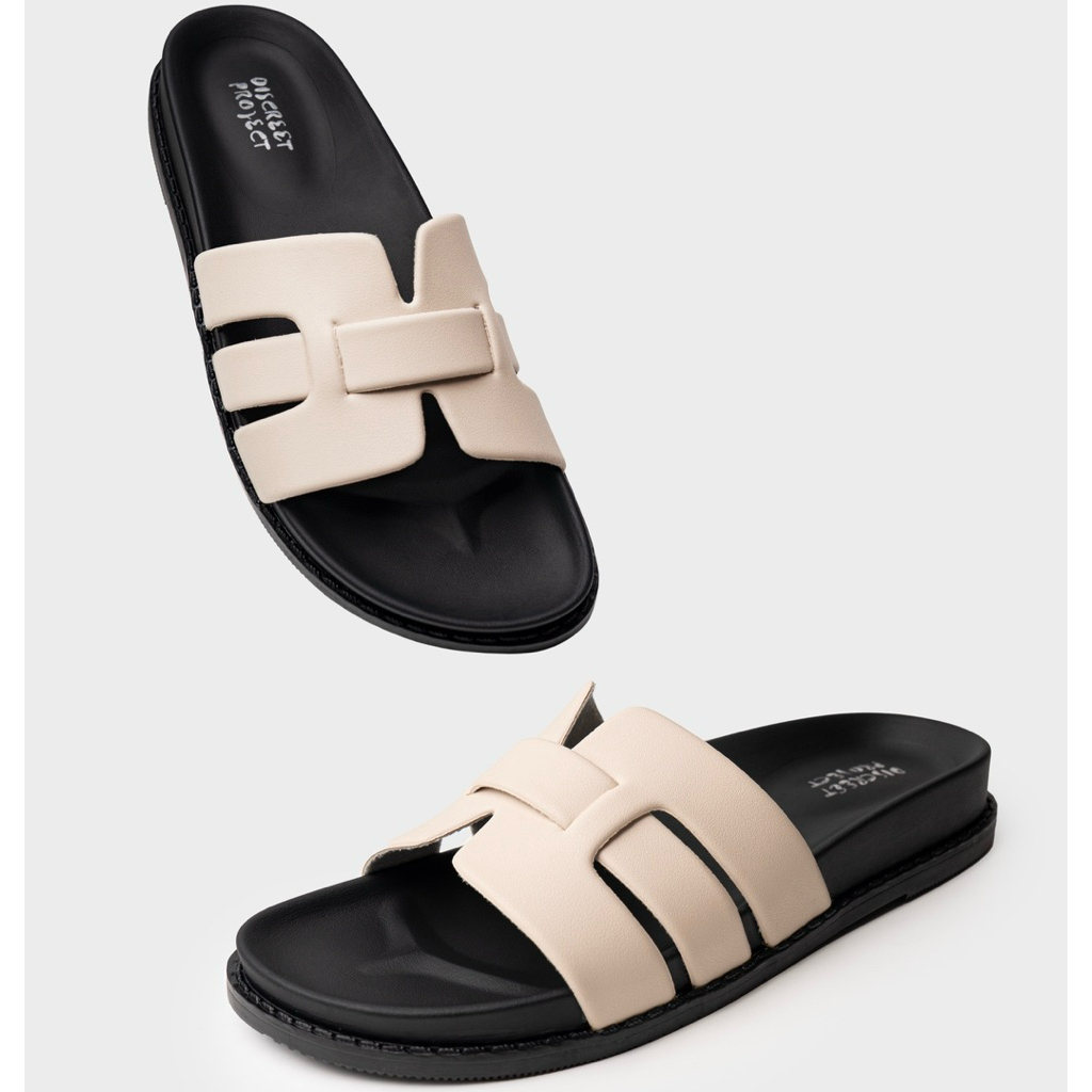 Discreet Project - Sandal Slip On EST 120 Hitam dan Cream