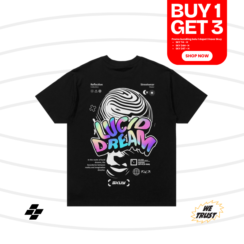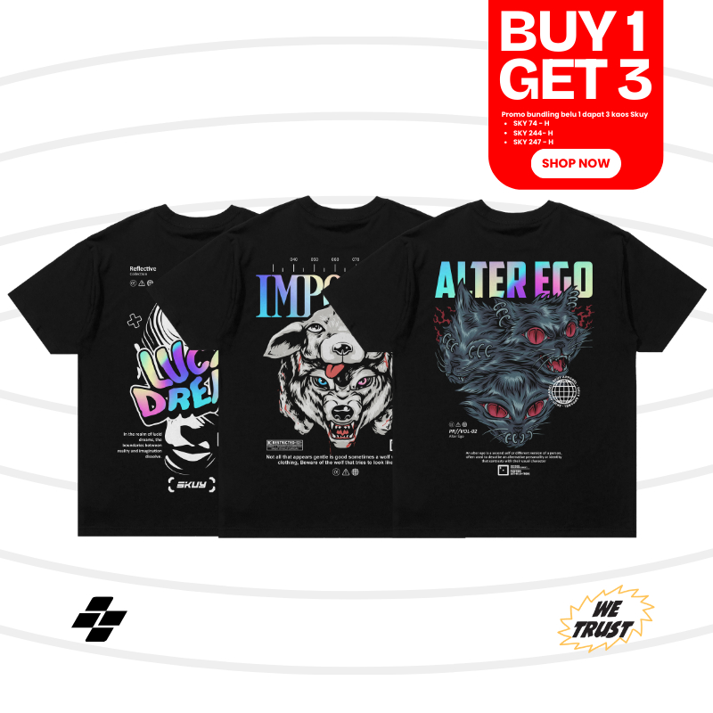 Skuy [Buy 1 Get 3] - Kaos Skuy Dewasa Lengan Pendek Baju Pria Bahan Cotton Combed 24s Kerah Bulat |Lucid Dream SKY317 | Impostor SKY318 | Alter Ego SKY319 (Beli 1 Dapat 3)