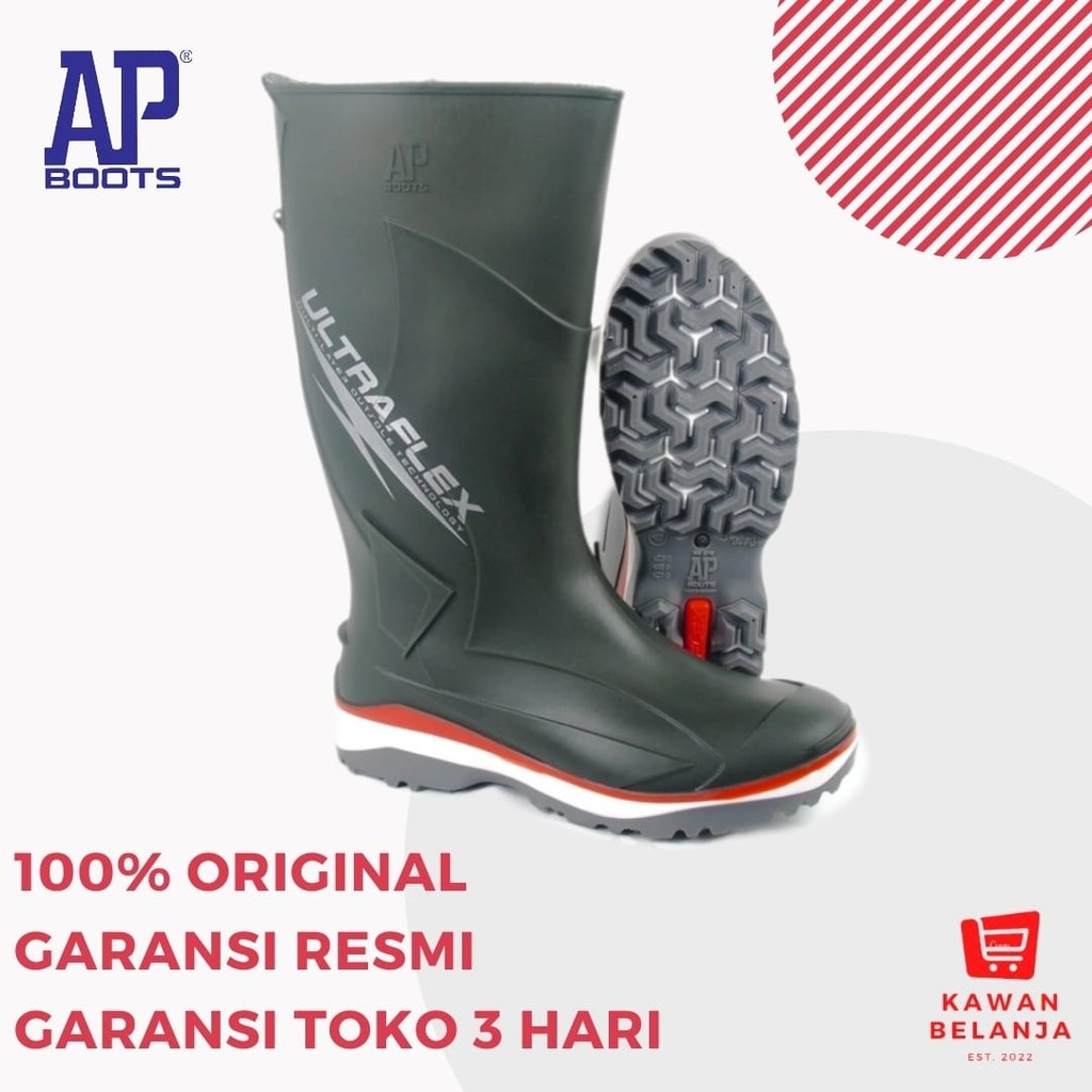 AP Ultraflex 2018 Safety Sepatu Boots Lentur Karet Premium Hijau Abu-abu Perikanan APD Perkebunan