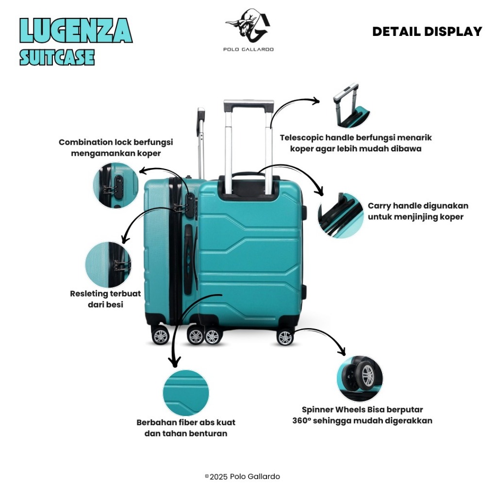 Polo Gallardo Lugenza Koper 20 Inch & 24 Inch Size Cabin Dan Bagasi Hardcase Fiber ABS