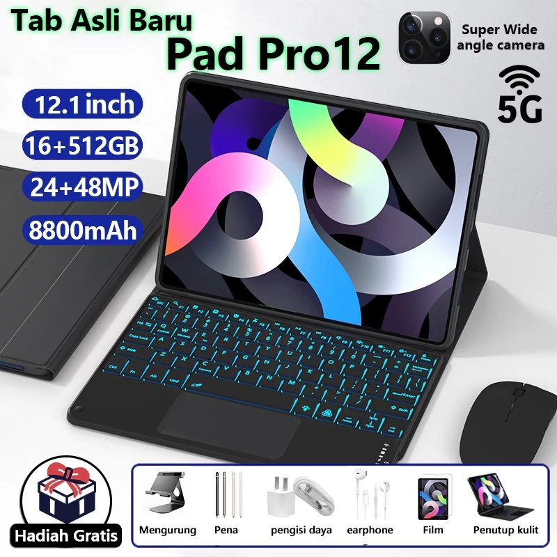 2025 Terbaru Tablet Android 12 Inci Layar Full Screen Dual SIM 5G WiFi Tablet Baru Murah Asli