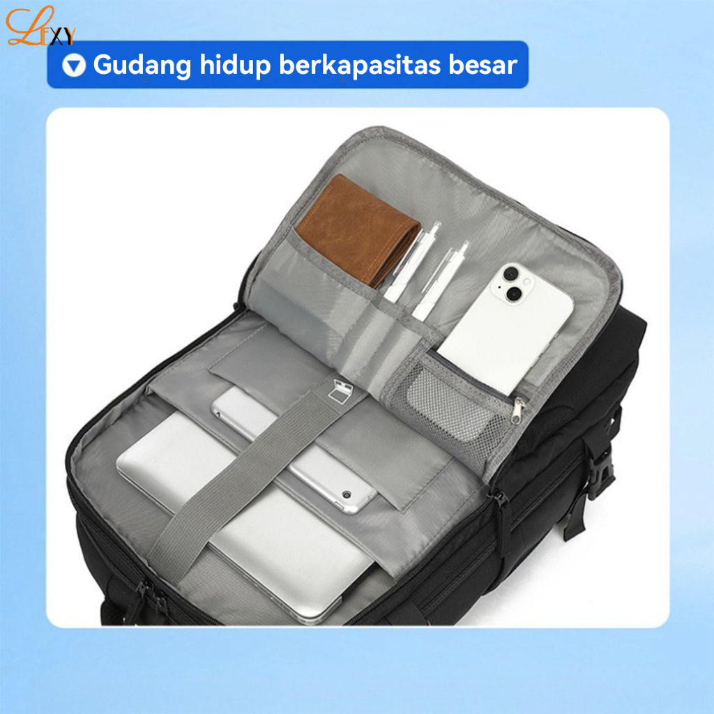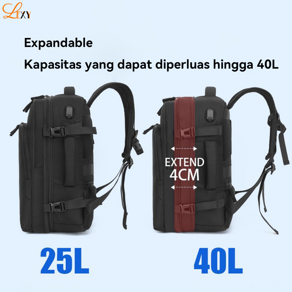 LEXY Tas Ransel Traveling Wanita Pria Multifungsi Anti Air Kapasitas Besar Yang Dapat Diperluas