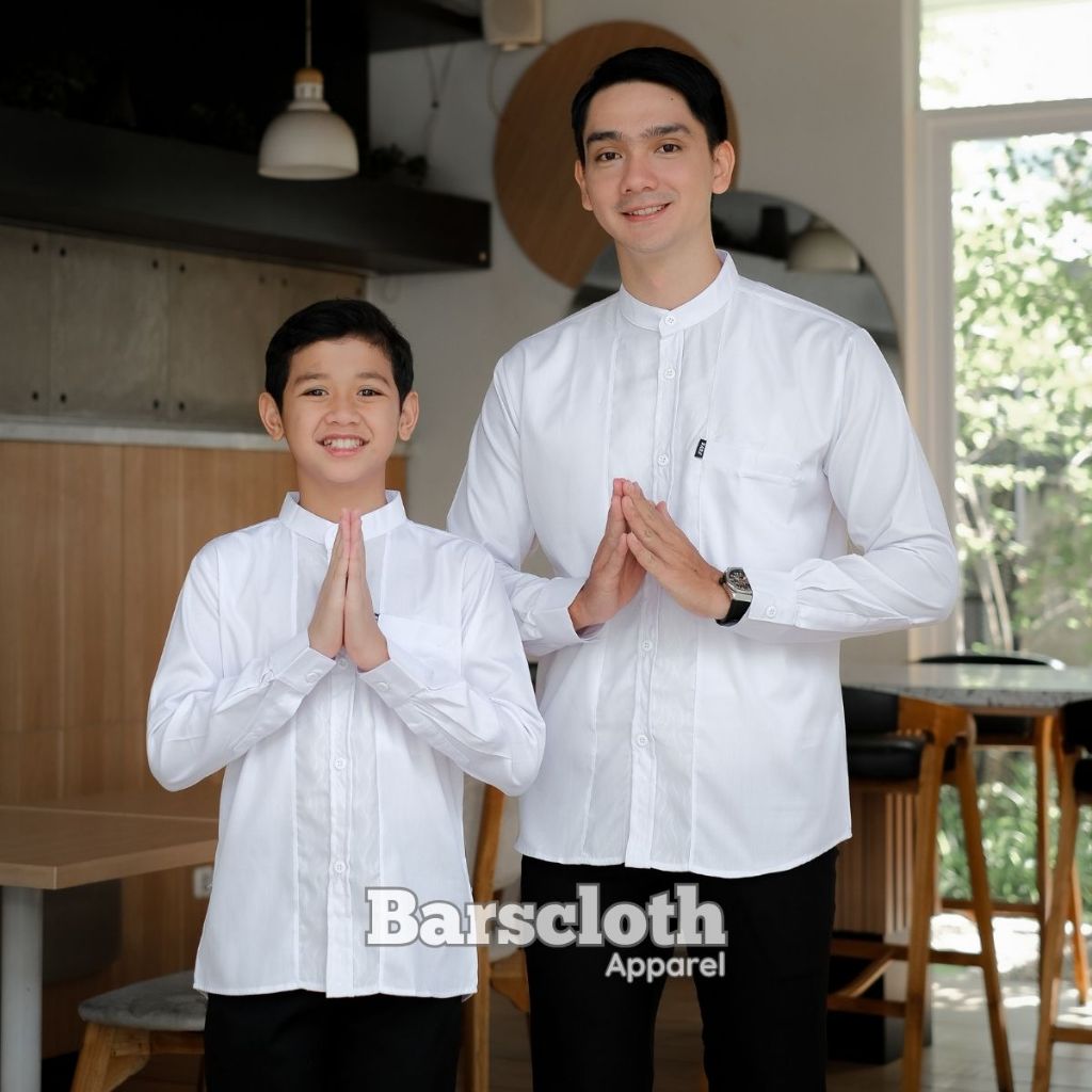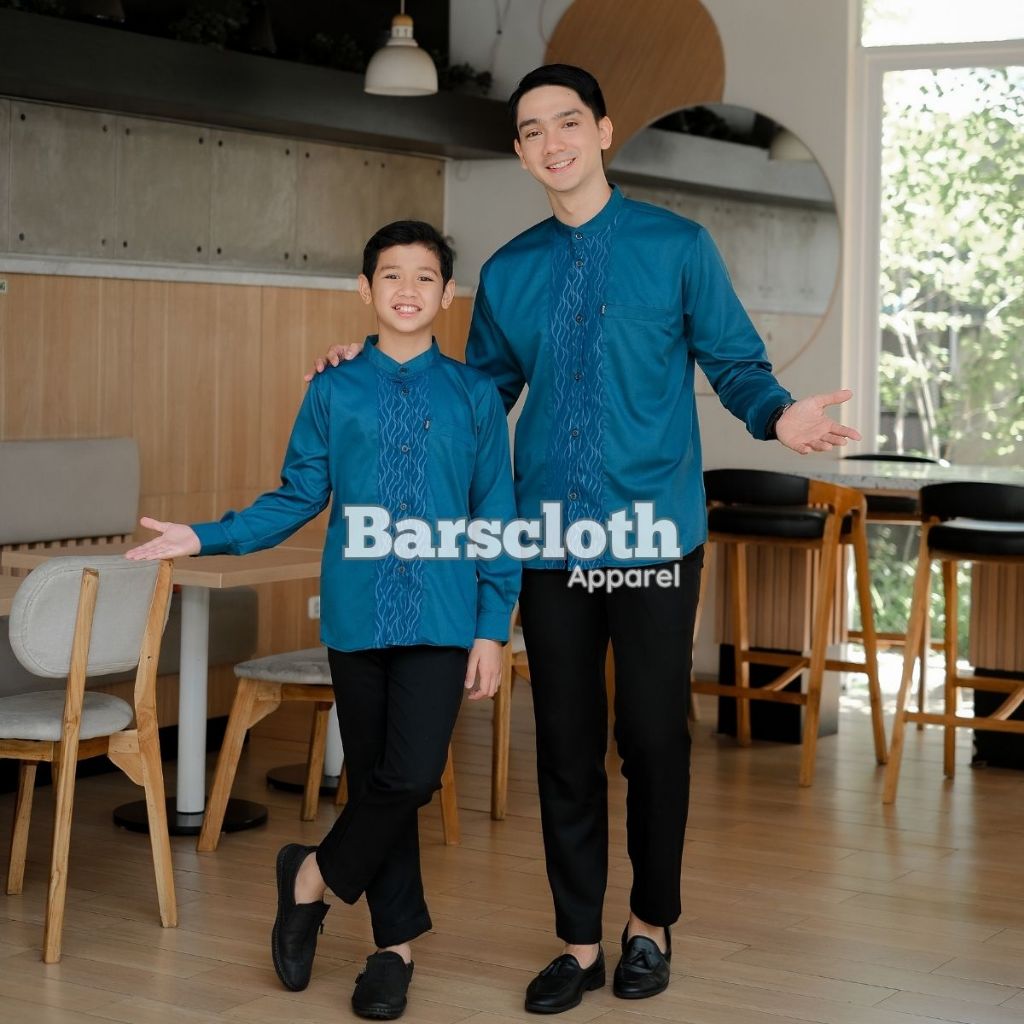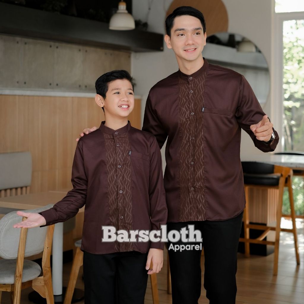 Barscloth Baju Koko Couple Ayah Anak Laki Laki Lengan Panjang Embos Mahogany Toyobo Import Terbaru