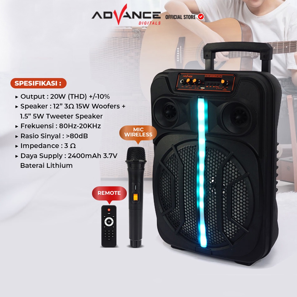Advance Speaker Bluetooth karaoke portable+1xmic Wireless TWS 12inch 120