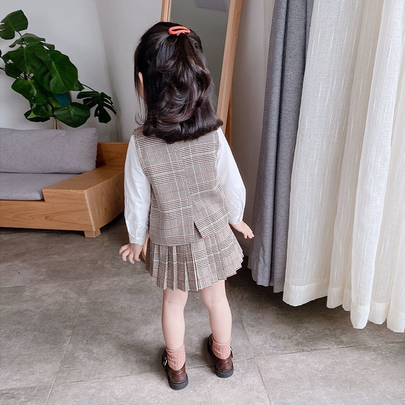 EOBaby L60 Setelan Baju Anak Perempuan Korean Style 3in1 Coklat Rok Blazer Kemeja Putih PREMIUM