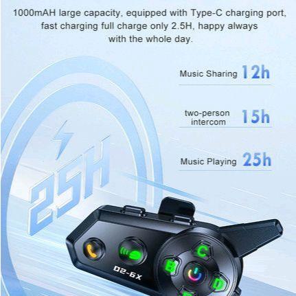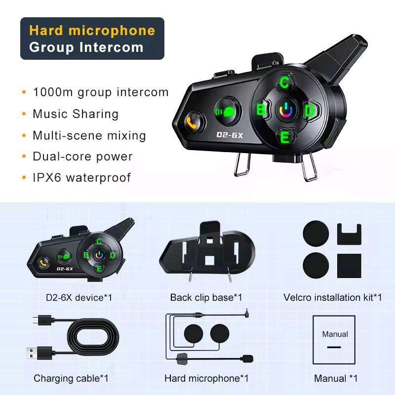 Intercom Headset Helm Bluetooth 6 Riders Interkom Grup Interkom untuk 6 Pengendara Tahan Air Berbagi Musik Wireless Earp