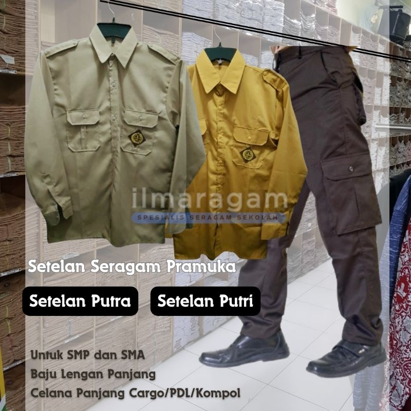 Setelan seragam pramuka SMP seragam sekolah pramuka SMA Baju panjang celana kompol cargo putra putri cewek cowok ukuran besar jumbo setelan lengkap