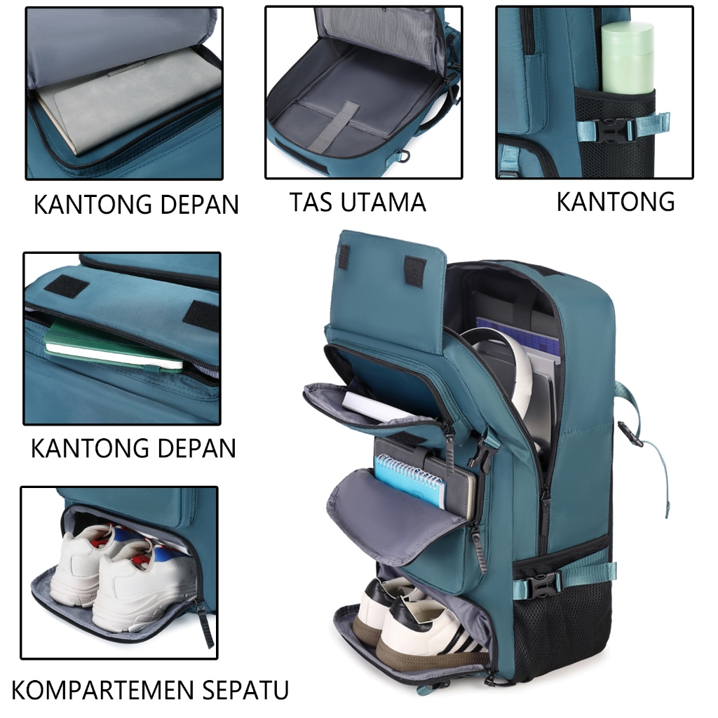 DEROOS Tas Ransel Travel Unisex Tahan Air Kapasitas Besar Banyak Kantong tas multifungsi#550