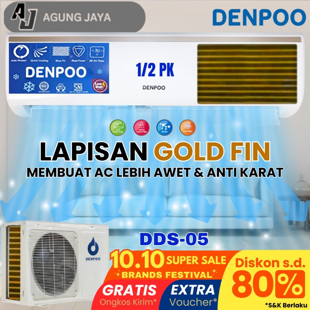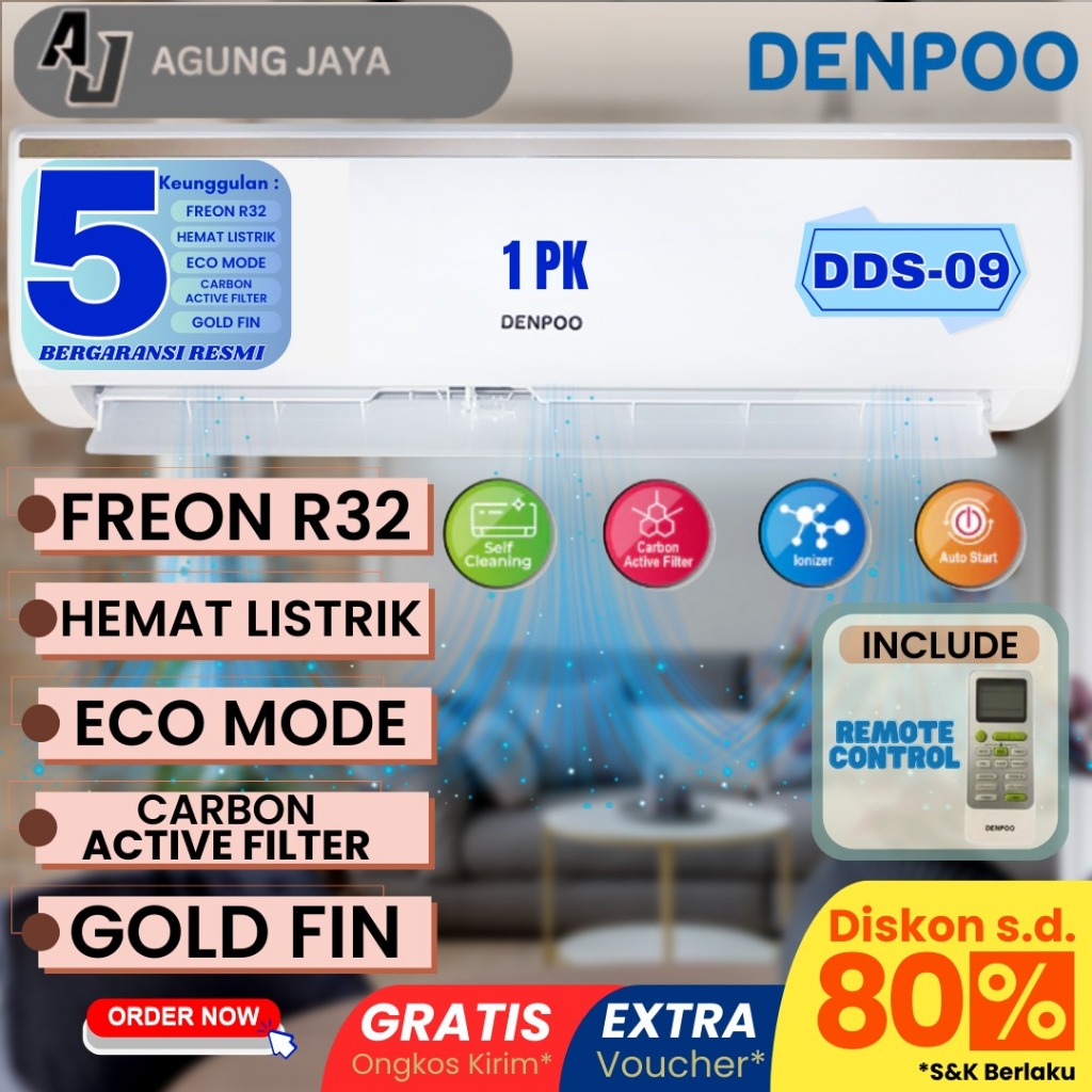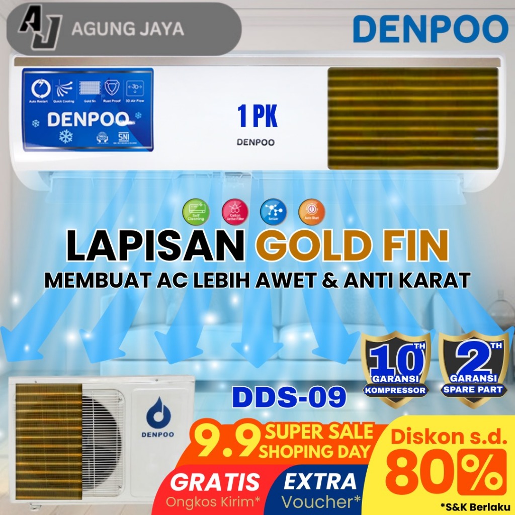 AC PENDINGIN RUANGAN DENPOO 1 PK DDS 09 CTL - UNIT ONLY/PASANG