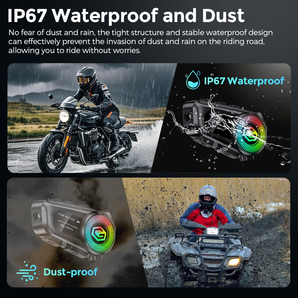 GEARELEC R1 Helm Bluetooth headset Hands Free Call IP67 Tahan Air SupportTF card/FM radio/EQ effect