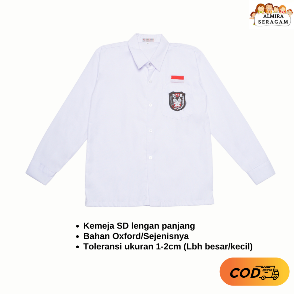 Kemeja Putih Lengan Panjang SD SMP SMA Baju Almira Seragam Sekolah SD SMP SMA Tebal Oxford Logo Bordir