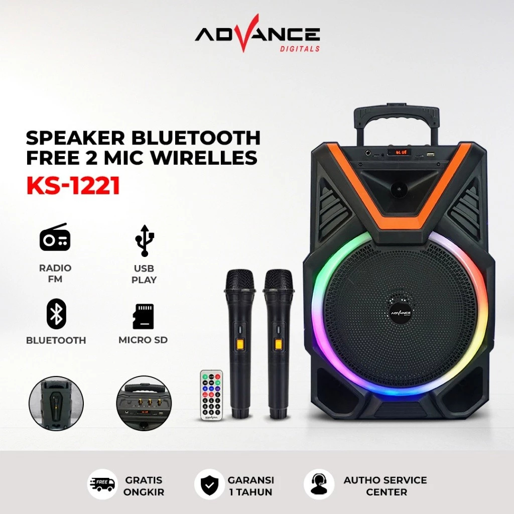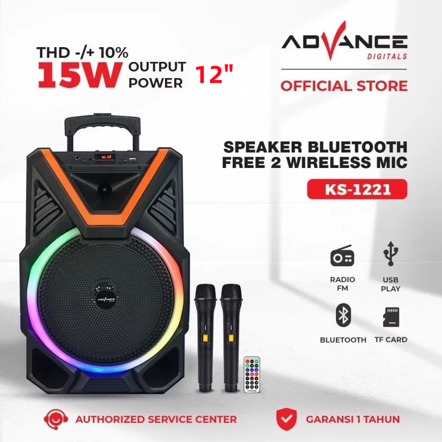 [] Advance 12inch Speaker Bluetooth Karaoke TWS Portable Karaoke FREE 2 Microphone Wireless