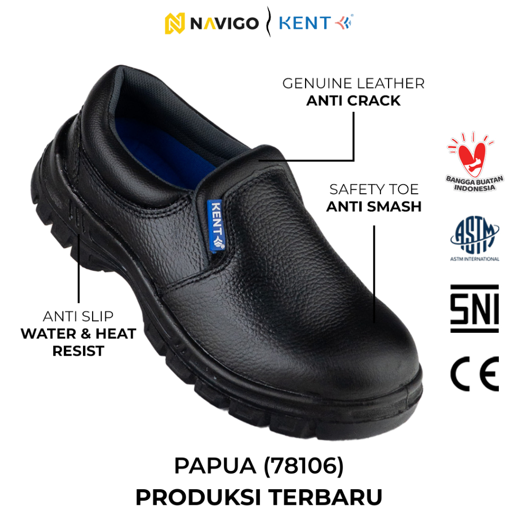 NAVIGO X KENT Sepatu Safety Pria Wanita KENT PAPUA 78106 - SNI ASTM CE Kulit Asli Ujung Besi Slip Resist Size 37 - 46