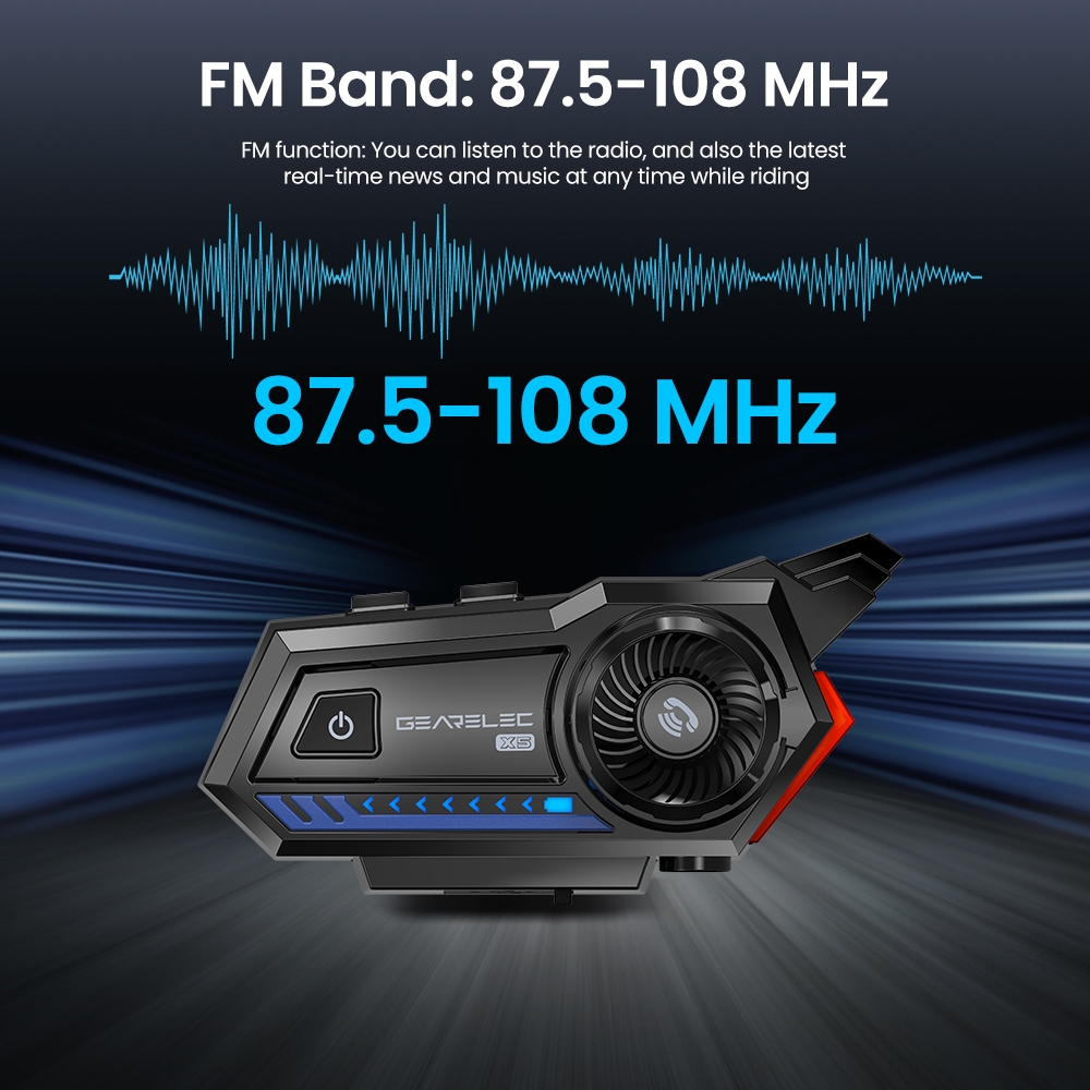 GEARELEC X5 Bluetooth Helm Headset Hands Free Call BT 5.1 dengan FM Radio Malam Lampu Peringatan