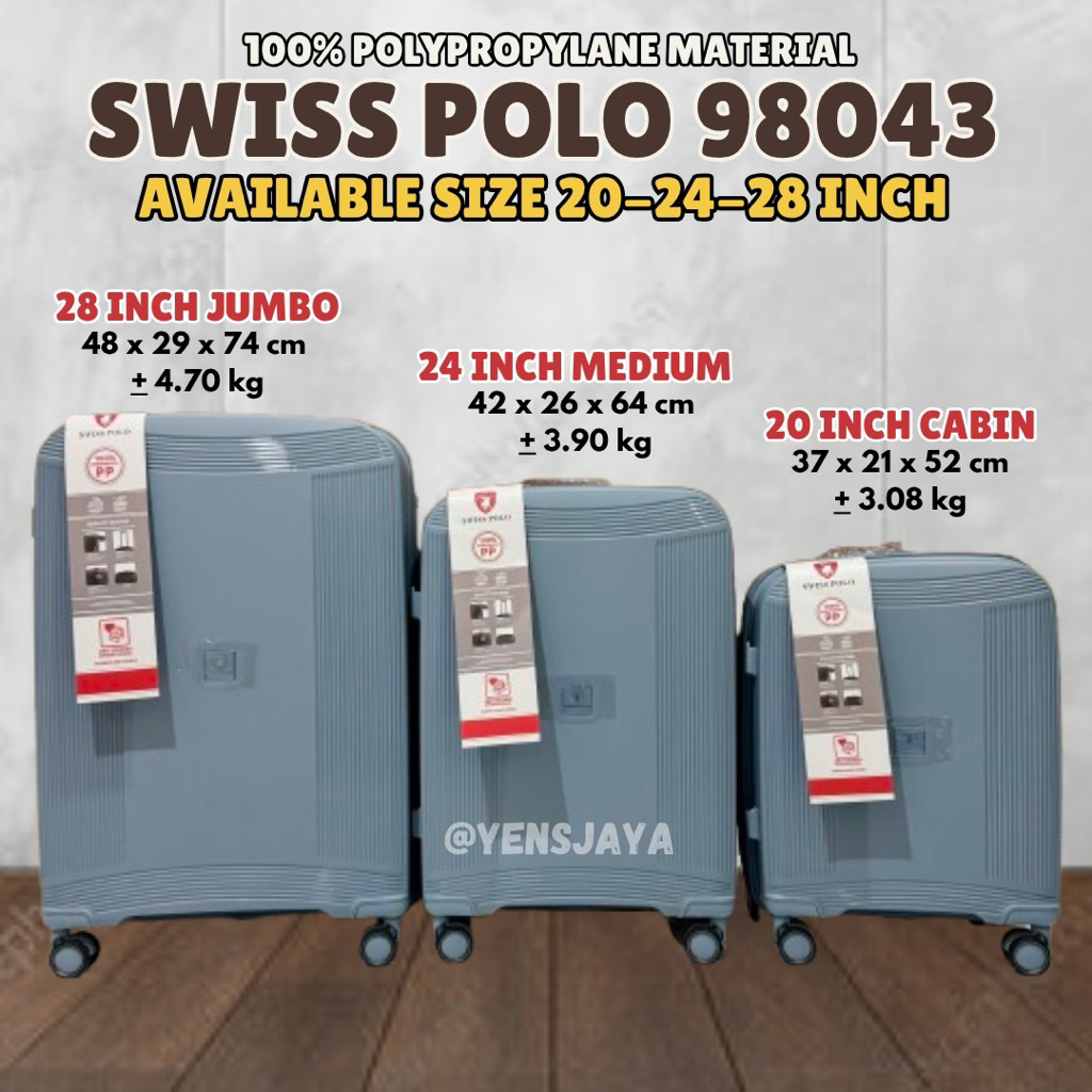 KOPER SWISS POLO 98043 98048 UKURAN 20/24/28 INCH KOPER KABIN & BAGASI SIZE BAHAN DOUBLE PP LENTUR KUAT ANTI PECAH - EXPANDABLE - RESLETING DOUBLE FREE PACKING KARDUS