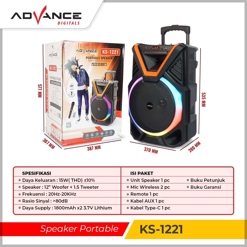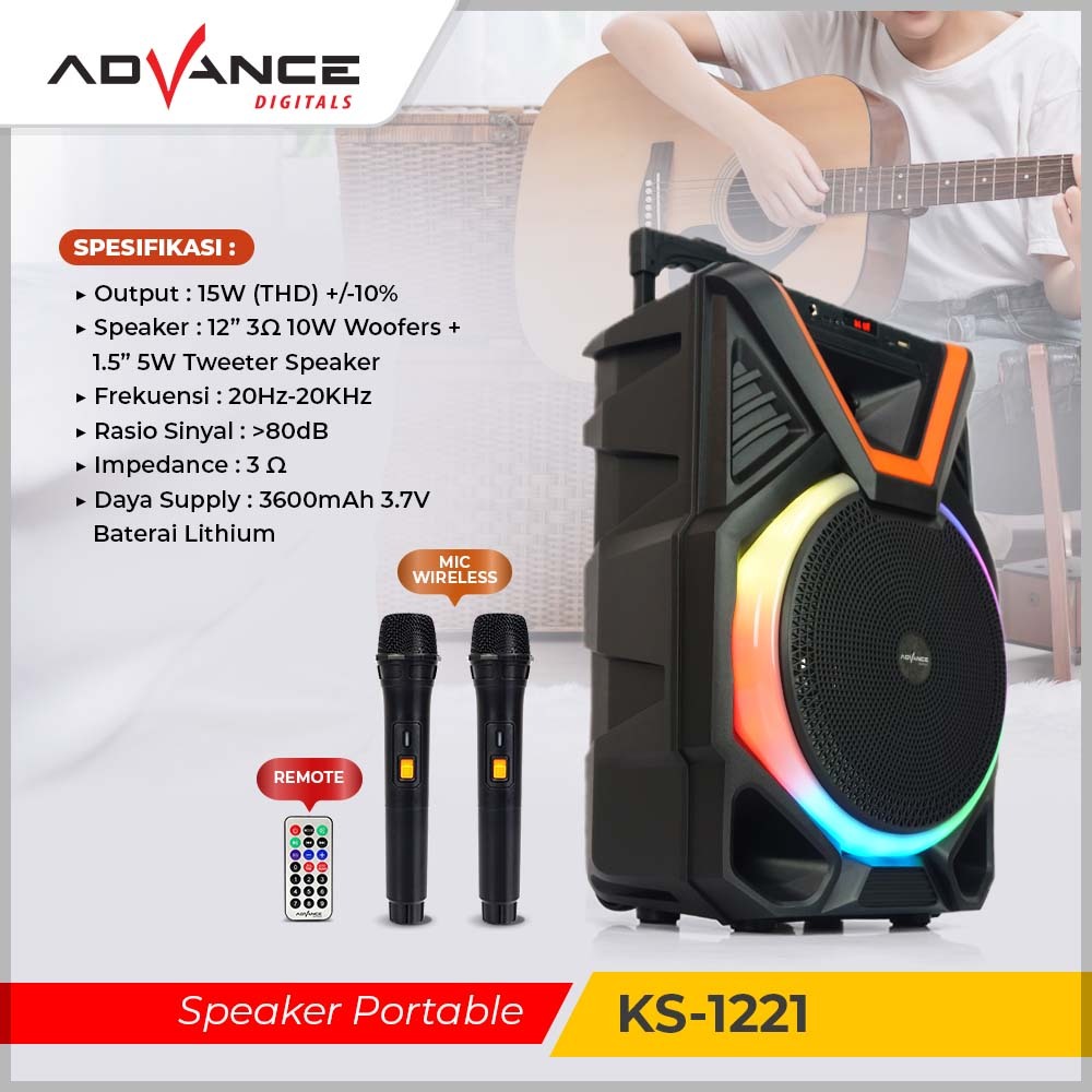 Advance KS-1221 Speaker Bluetooth Portable Wireless 12Inch 15W Fungsi TWS + 2 Mic Wireless Karaoke