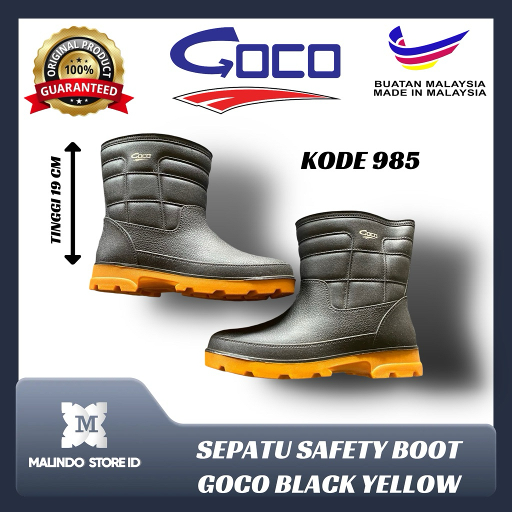 Sepatu Boot Safety Goco Hitam list Kuning / Sepatu Boot Safety Petani / Sepatu Safety Black Yellow