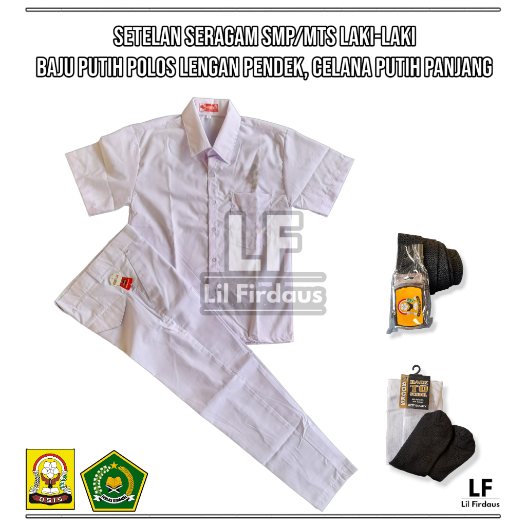 Seragam SMP/Mts Laki-Laki Satu Setel Komplit Baju Putih Polos Lengan Pendek Celana Putih Panjang