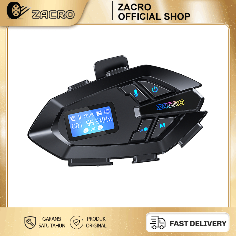 ZACRO S1 pro Intercom helm Bluetooth 5.4 FM Radio Layar LCD Interkom jarak 500m Bagikan musik Radio FM Peredam bising ot