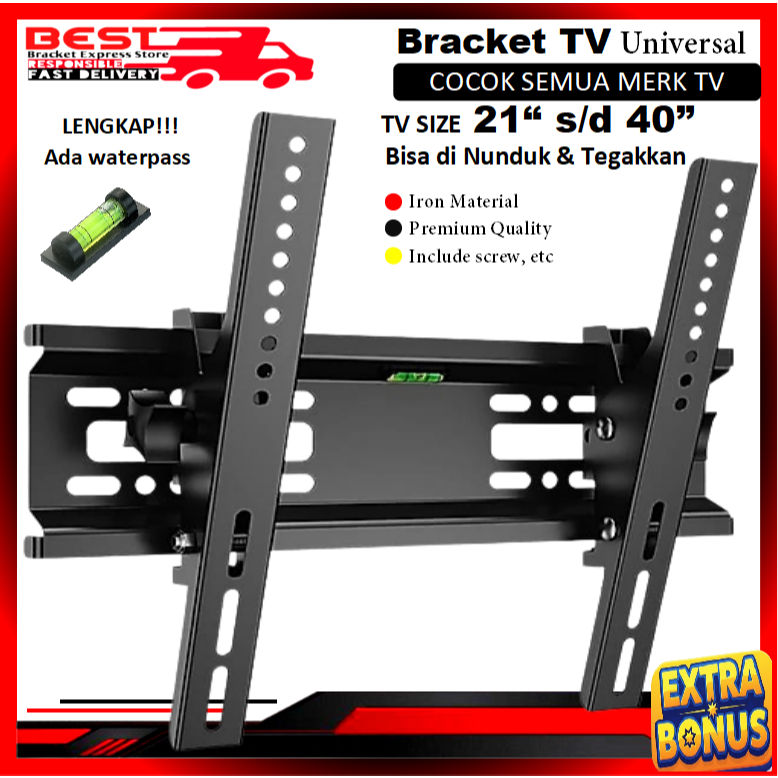 FREE GIFT Bracket tv 21" s/d 55" Universal 21 24 32 40 42 43 50 55 inch 100 PERSEN FULL BESI BEST QUALITY Bracket tv Braket tv Breket tv Briket tv Brackettv Brakettv Brekettv Brikettv