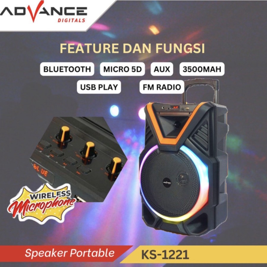 Speaker Advance KS-1221 12inci Meeting Bluetooth Portable + Mic Wireless KS-2613 Karaoke pengajian