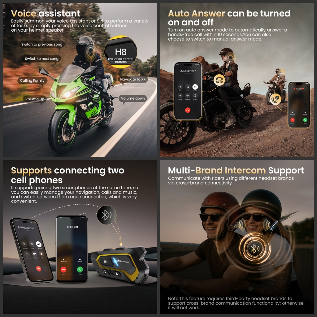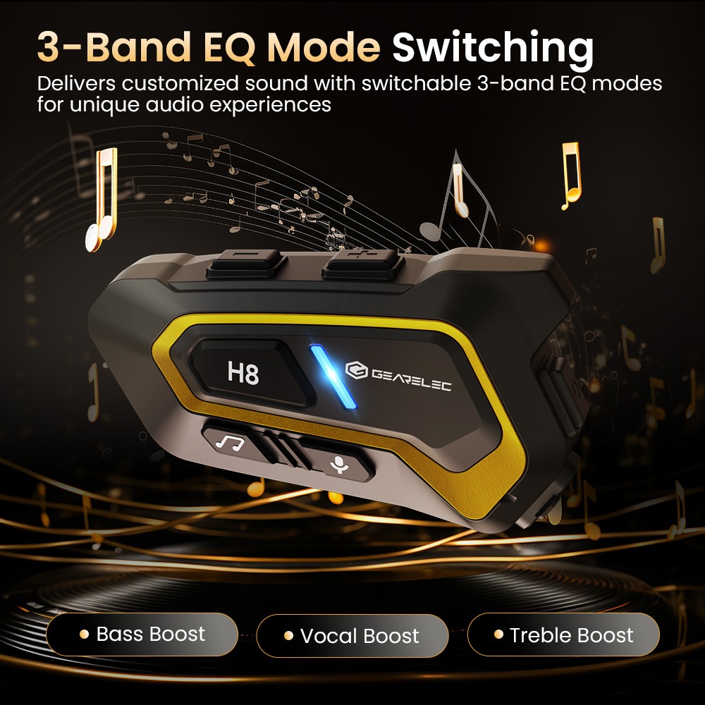 GEARELEC H8 Intercom Helm Bluetooth 6 riders 1500m Bluetooth interkom music sharing dengan Radio FM