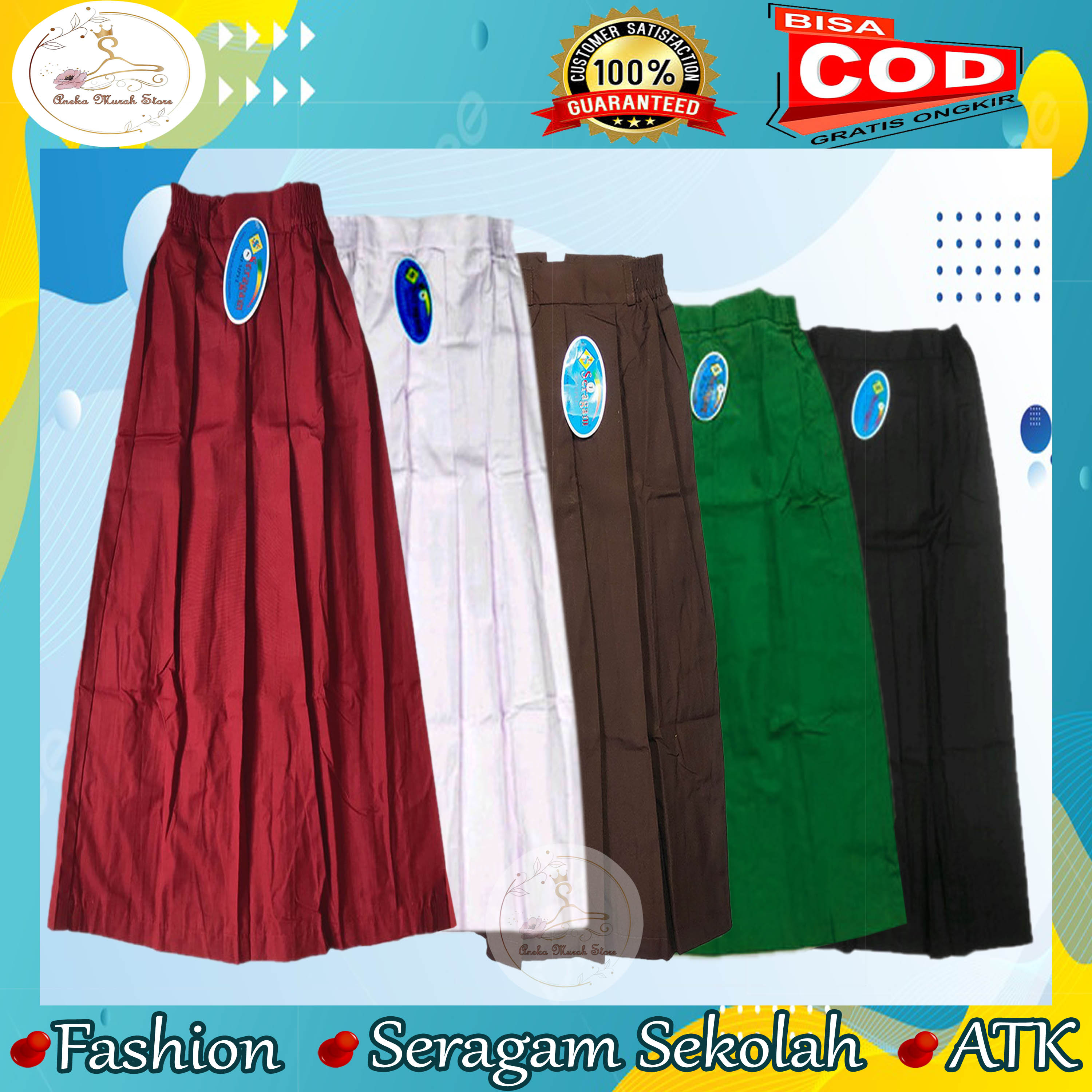 Rok SD ,SMP , SMA Rempel Panjang Merah /Putih /Coklat/Hijau /Hitam Merek Seragam