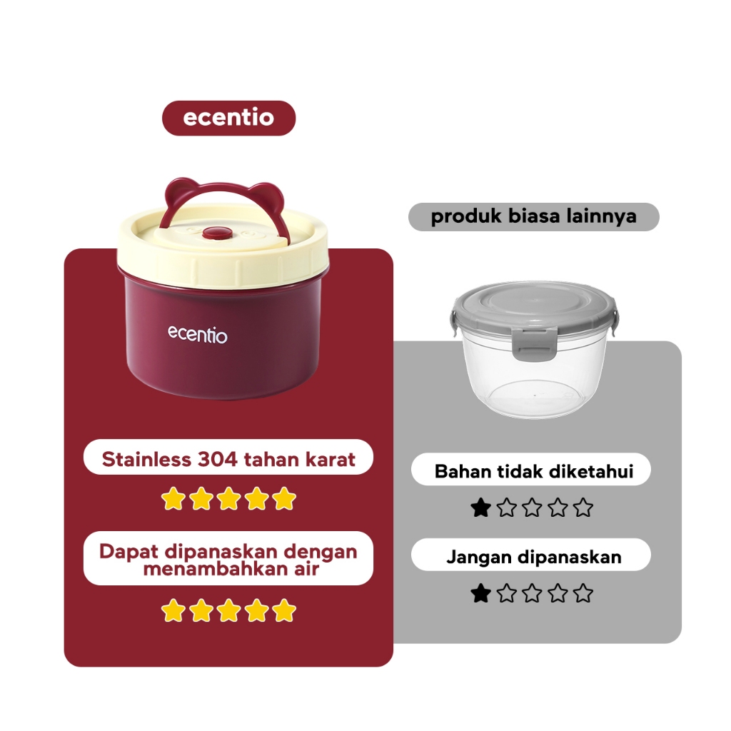 Ecentio Lunch Box Kotak Makan 4Pcs Set Stainless 304 Anti Tumpah (Merah)