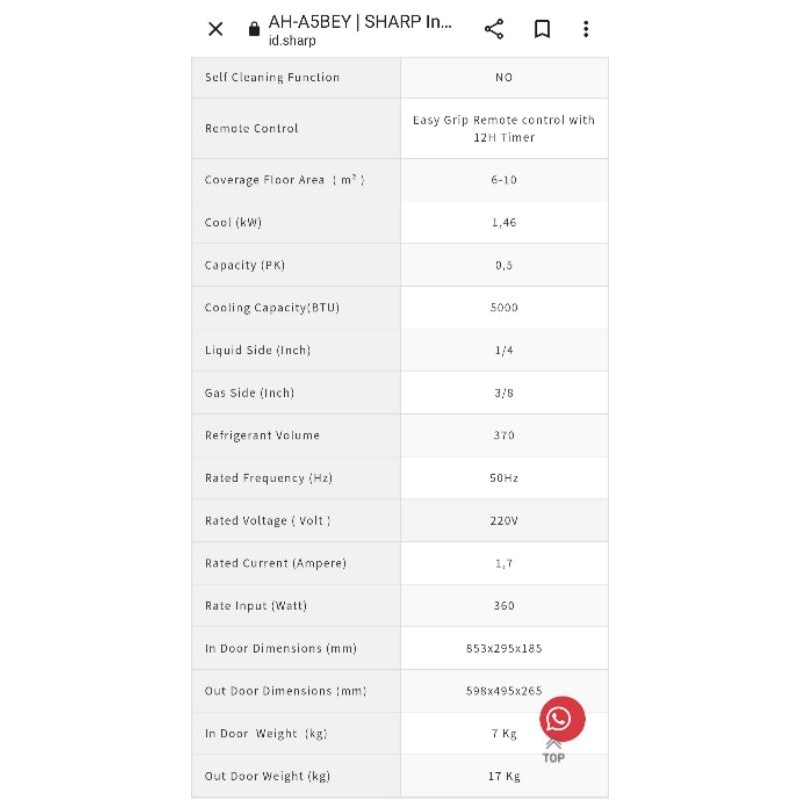 AC SHARP 1/2 PK + PASANG AH-A5BEY / 5BEY SPLIT R 32 1/2PK 0.5 PK