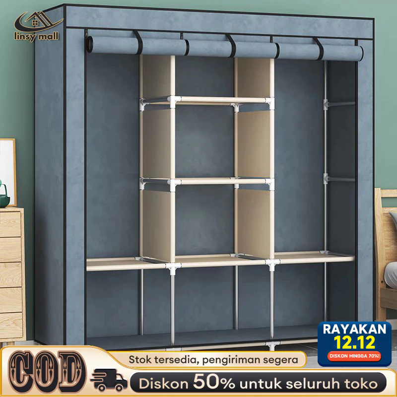 Lemari Pakaian Kain rtable Lemari Baju Kain Anti Debu Penyimpanan Baju Wardrobe Serbaguna