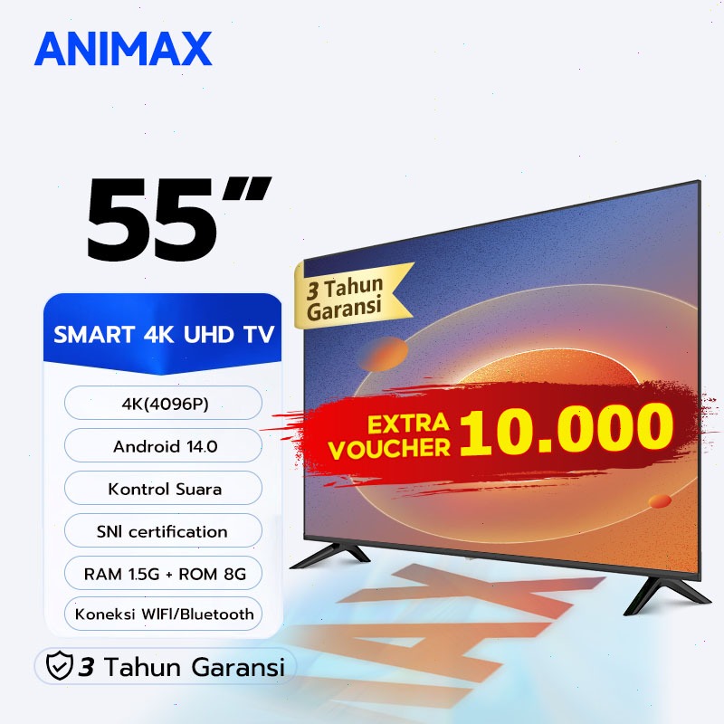 [4K Google TV]Animax Smart 55 inch TV Digital Smart Android 14.0- 4K UHD-Dolby Audio-Youtube-Kontrol suara