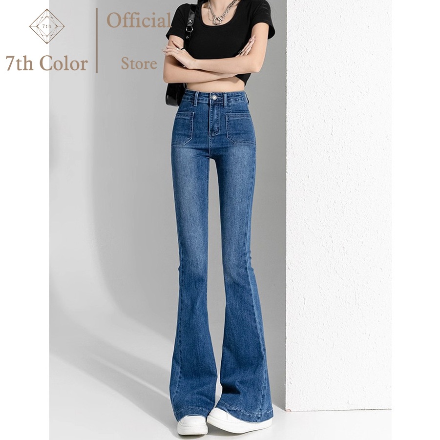 7th Color / Cutbray Jeans Panjang Wanita Celana Korean Style Celana Elastis Denim Celana Jeans Ketat