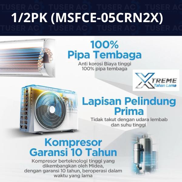 AC MIDEA 0,5 PK MIDEA 1/2 PK R32 MSFCE-05CRN2X LOWWATT GOLDFIN Garansi Resmi 10 Tahun
