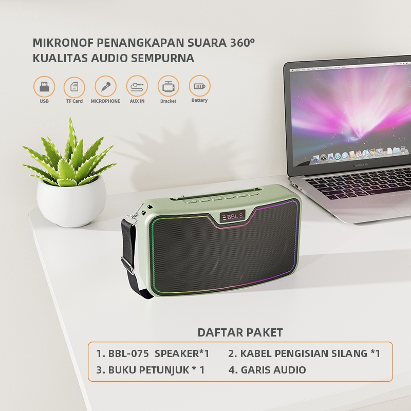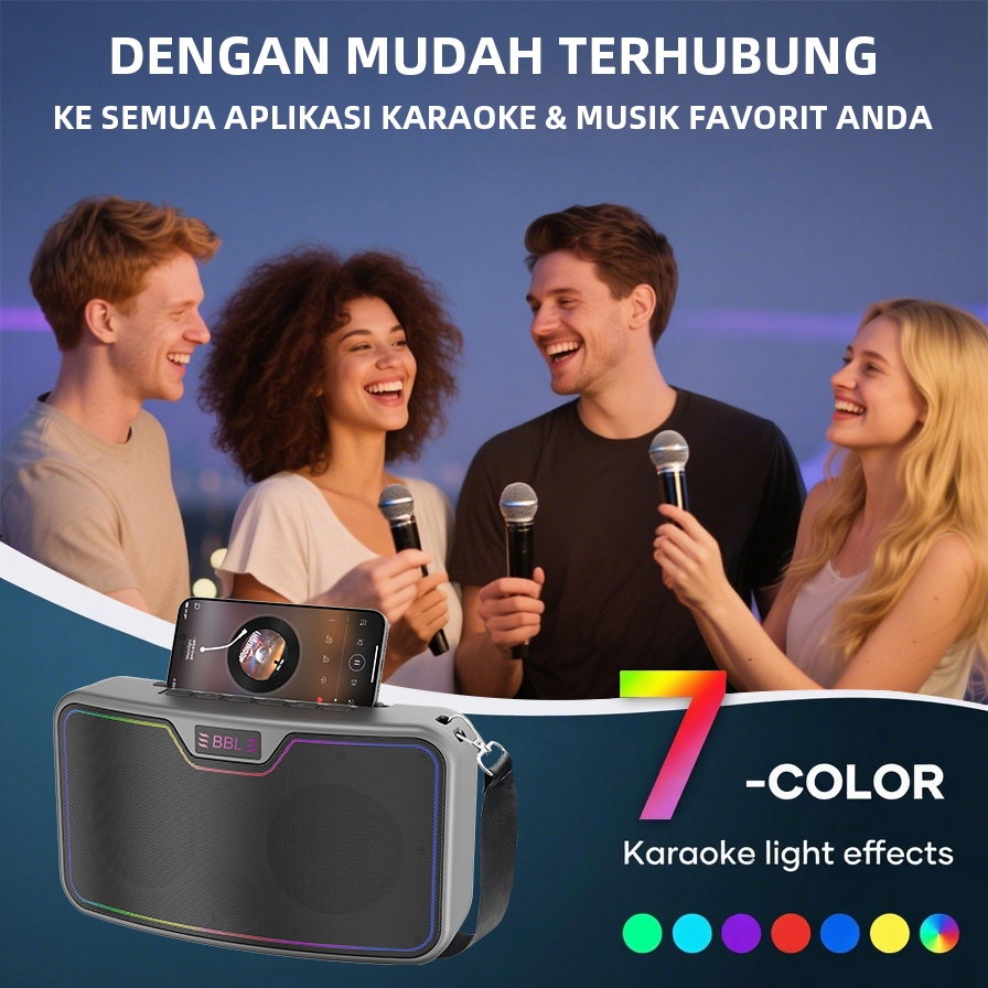 BBL-075 Sistem Karaoke Nirkabel Bluetooth Portabel, dilengkapi dengan subwoofer, mikrofon, dan efek pencahayaan LED, dengan berbagai pilihan warna. Daya tahan baterai hingga 3-5 jam.