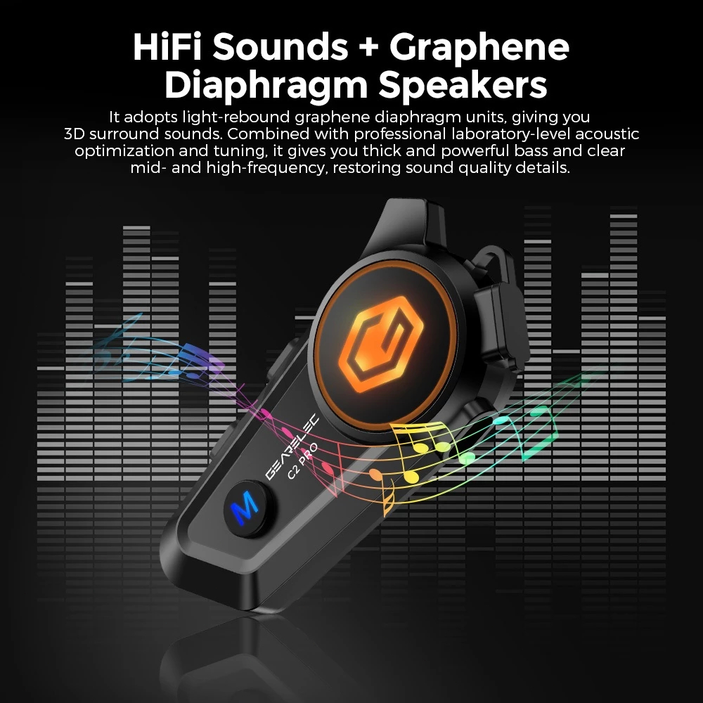 GEARELEC C2 Pro Motorcycle Helmet Intercom Headset 2 Riders 50m Intercom Support Music Sharing While In Intercom