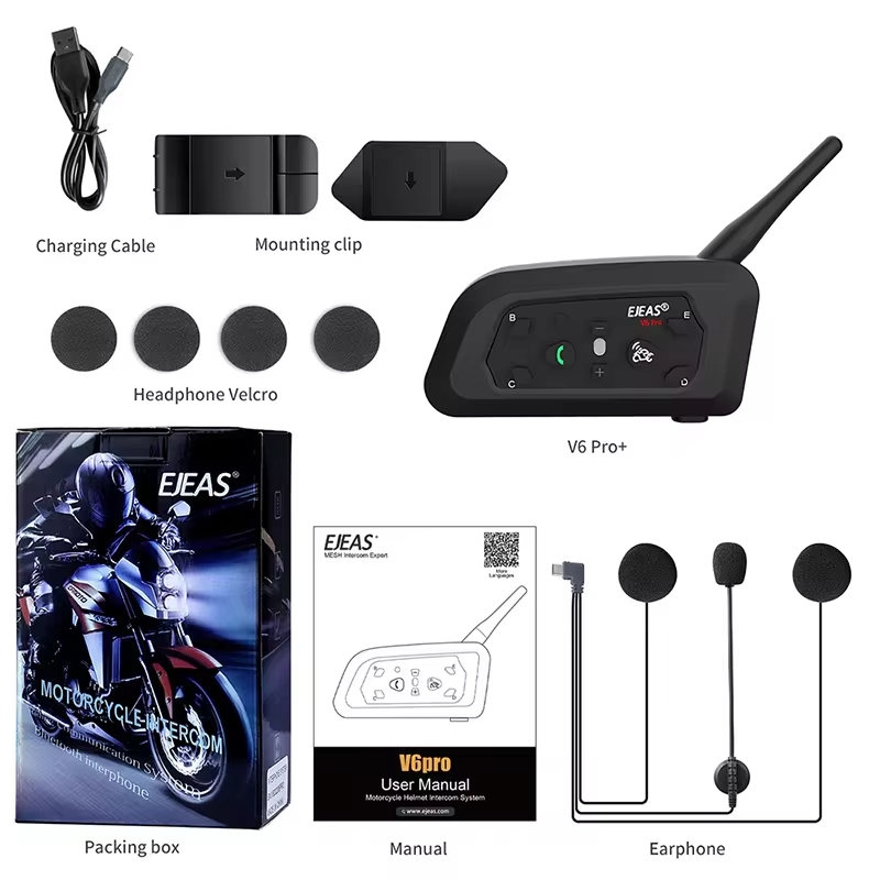 Intercom Ejeas V6 Pro Plus + Headset Helm Bluetooth