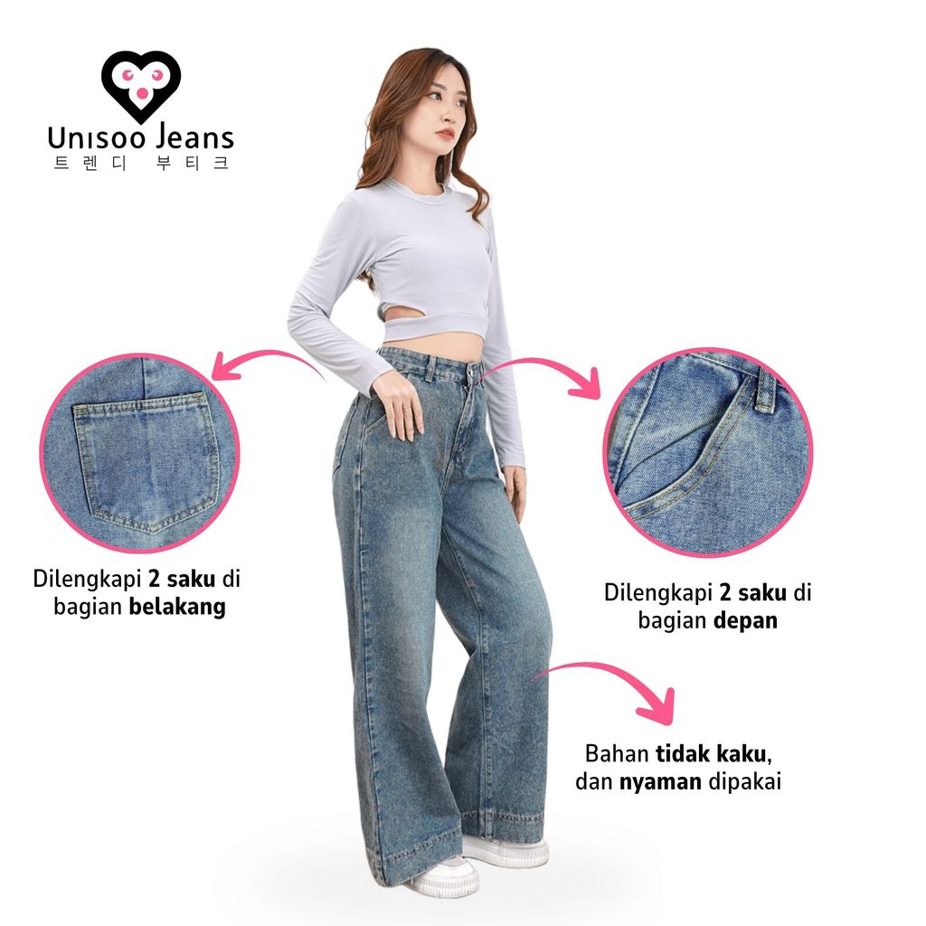 UNISOO JEANS - CK8007 Celana Jeans Highwaist | Celana Jeans Kulot | Jeans Wanita Highwaist | Loose Jeans | Wide Leg Jeans
